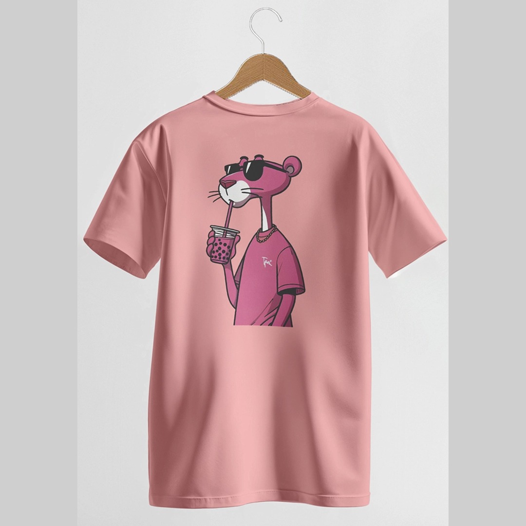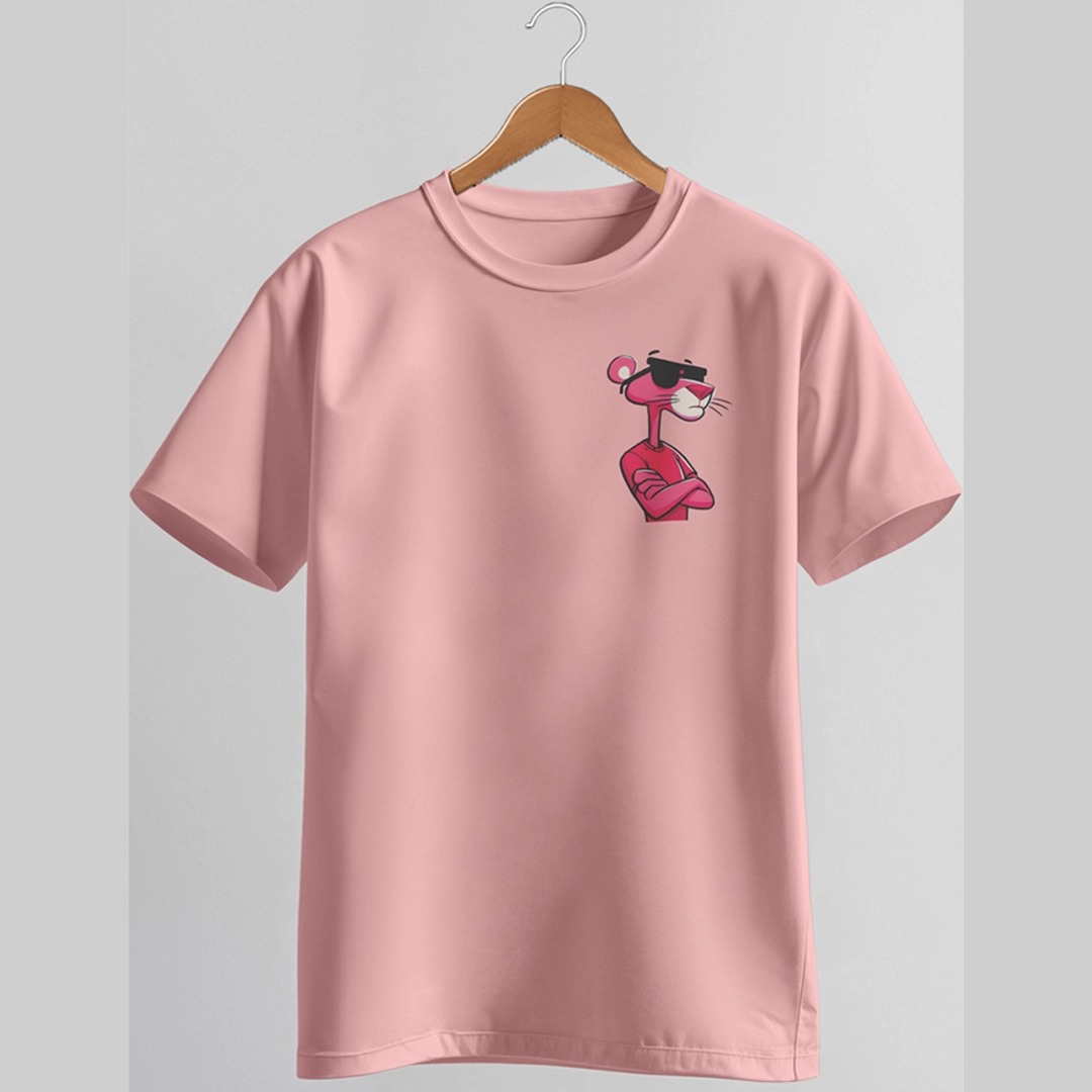 خلي ستايلك غير بهالتيشيرت الوردي الحلو، مطبوع عليه شخصية النمر الوردي بستايل عصري وجذاب! من قدام رسمه وهو لابس نظارات ومتشذب، ومن ورا ماسك بوبا ويبين رايق عالآخر 😎