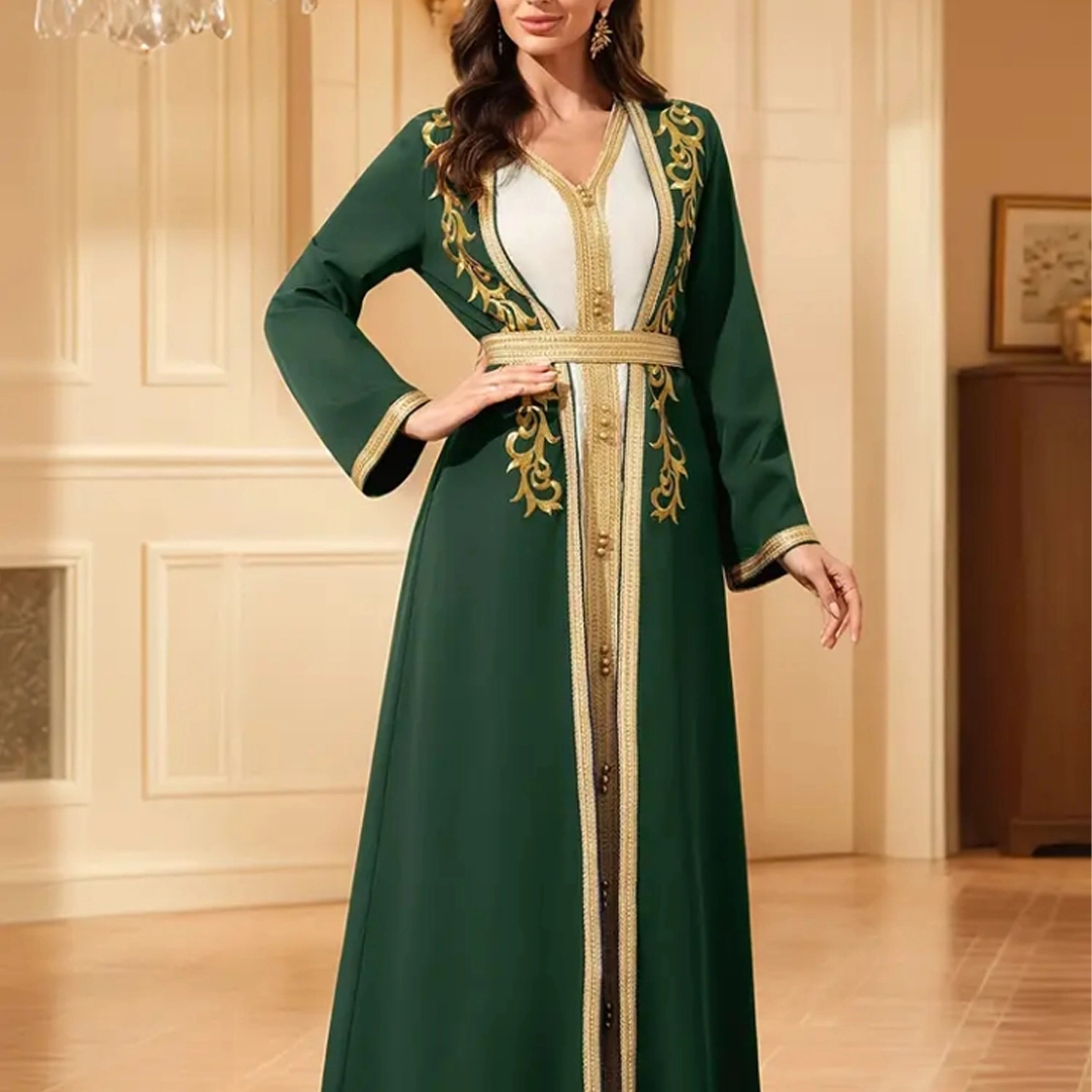 4- قفطان فاخر بلون أخضر زمردي وتطريز ذهبي
