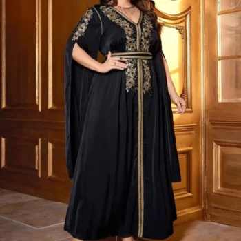 تألّقي بإطلالة راقية تخطف الأنظار مع هذا القفطان الأسود الفاخر المصمم خصيصًا ليبرز أنوثتك بكل نعومة..